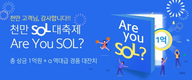 신한은행은 쏠 가입 고객 1000만명 달성이 가시화되면서 이를 기념하기 위해 이벤트를 마련했다. 이번 이벤트는 사전 이벤트 ‘쏠 천만-Day를 맞혀라’에서 메인 이벤트 ‘총 상금 1억원에 도전하라’로 이어진다.