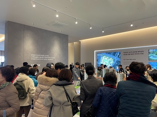24일 개관한 견본주택에는 이른 시간부터 긴 대기 줄이 형성되는 등인파가 몰리며 북새통을 이뤘다. 내부는 모형도를 관람하려는 수요자들과 유니트를 보려는 수요자들로 북적였고, 상담석에 이어 대기석까지 많은 이들로 인해 발 디딜 틈조차 없었다.