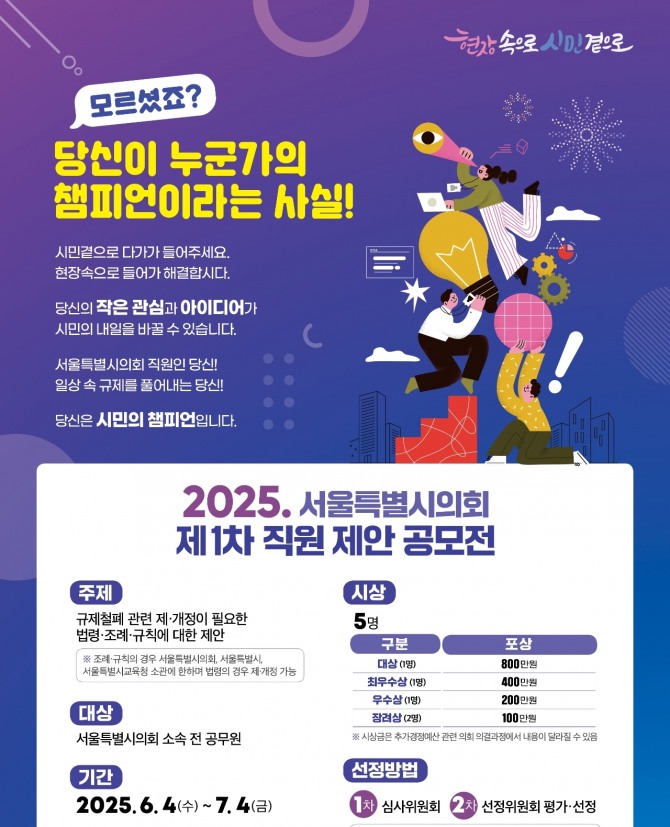 이미지 확대보기이번 공모전은 서울시의회가 연초부터 추진한 일상 속 규제 없애기 프로젝트의 일환이다.