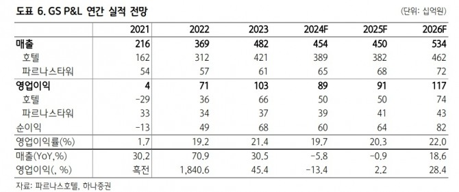 이 연구원은 "호텔 사업은 구조적으로 높은 성장 여력을 보유한 업은 아니다"라며 "다만, 파르나스호텔의 경우 서울 핵심 지역 입지로 높은 실적 가시성을 확보하고 있으며 중장기적으로 관광 시장도 개별 여행 중심으로 확대되고 있는 만큼 고급 수박 시설에 대한 수요는 확대될 것"으로 예상했다.