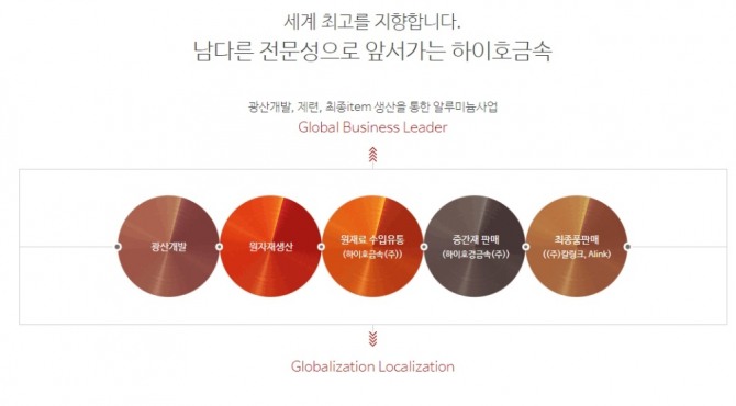 이를 위해 원재료 수입 유통을 하는 하이호금속(주)와 중간재를 판매해는 하이호경금속(주), 최종품(자동차 부품)을 판매하는 (주) 칼링크와 휠제조 업체 알링크를 계열사로 두고 있다.