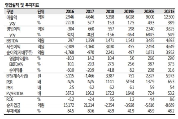 이에 따라 내년 별도기준 실적은 매출액 9000억 원, 영업이익 2340억 원으로 전년대비 각각 49.3%, 684.5% 급증할 것으로 내다봤다.