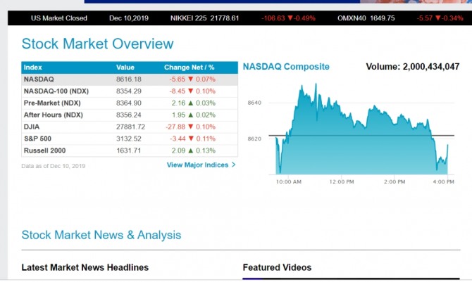 After Hours (NDX) 8356.24 1.95 ▲ 0.02% 다우지수 DJIA 27881.72 -27.88 ▼ 0.10%