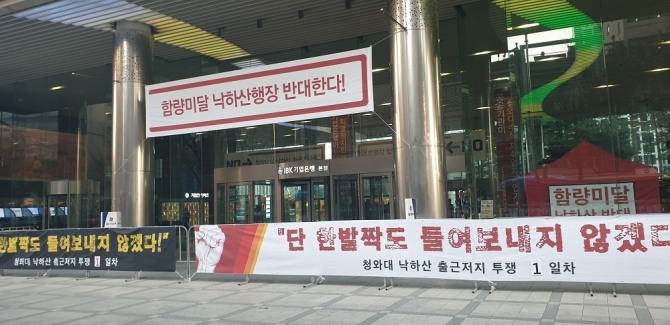 기업은행 노조는 지난 3일부터 윤 행장 출근 저지 투쟁을 벌이고 있다. 전국사무금융노동조합연맹과 한국은행 노조, 금융감독원 노조 등 관계자들도 기업은행 노조의 윤 행장 출근 저지 투쟁에 참여하면서 기업은행 내부문제에서 노동계와 정부 간 불화로 확대되는 모습이다.