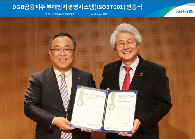 DGB금융지주는 이번 인증을 통해 반부패경영시스템 국제표준 요구사항 충족을 공식적으로 인정받았다.