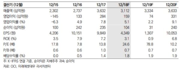 OCI의 4분기 영업실적은 432억원의 적자를 기록해 최근 낮아진 컨센서스를 하회했다.