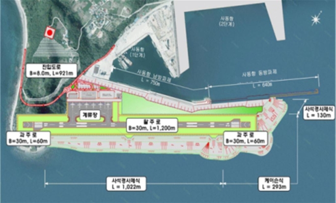 울릉공항 건설공사는 50인승 이하 소형항공기가 취항하는 공항을 총 사업비 6633억 원을 투입해 1200m급 활주로와 여객터미널 등을 짓는 사업이다.