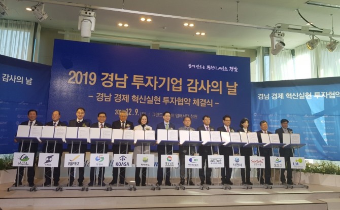 이미지 확대보기삼양식품은 9일 경남 창원 그랜드 머큐어 앰배서더 호텔에서 경상남도, 밀양시, 한국주택토지공사 등과 공장 설립을 위한 투자 협약(MOU)을 체결했다고 밝혔다.