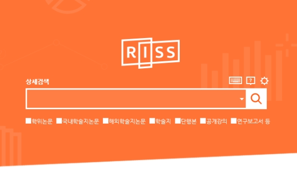 포털 등에 RISS를 검색해 홈페이지에 접속해야 한다. RISS의 첫 접속화면은 단순 검색창이다. 이 검색창 아래에는 사용자가 일부의 부류만 검색해 볼 수 있도록 하는 박스가 설정돼 있다. 자신이 필요한 논문자료의 유형을 이 박스에 체크하면 된다.