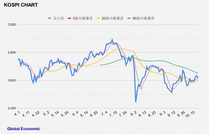 이미지 확대보기이날 한국거래소에 따르면, 9시 5분 현재 코스피는 전 거래일 보다 6.56포인트(0.25%) 상승한 2616.92를 기록하고 있다.
