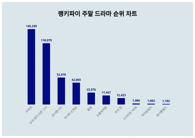 이번 주말 드라마 1위 커넥션는 14만 5249포인트로 전주 대비 1만 7722포인트 상승했다.