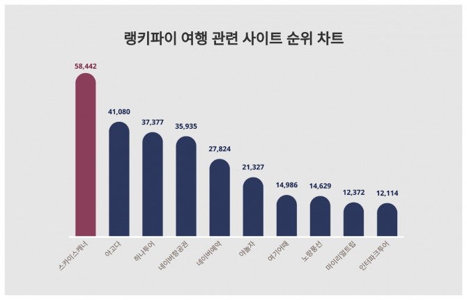 이미지 확대보기1위인 스카이스캐너는 5만 8442포인트로 전주보다 460포인트 하락했다.