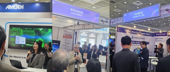 이미지 확대보기특히 AI 기반 신약개발 및 데이터 분석 기술을 앞세운 바이오 스타트업들이 눈에 띄었다. '아론티어'는 AI 기반 신약개발 플랫폼을 통해 신규 타깃 발굴과 후보물질 설계를 지원하는 기술을 선보였다. 단백질과 항체, 소분자 약물 설계에 인공지능을 적용해 신약 후보물질 발굴 속도를 높이고 개발 효율성을 개선하는 데 초점을 맞춘 것을 소개했다. 이와 함께 R&D과정의 효율화를 위한 기술을 보인 스타트업도 있다. '에이블랩스'는 액체 핸들링 로봇과 자동화 소프트웨어를 결합한 연구 자동화 솔루션을 선보였다. 반복적인 실험 과정을 자동화해 연구 시간을 단축하고 오류를 줄이는 데 초점을 맞춘 것으로 연구 효율성과 결과 재현성을 높이기 위한 기술이다.