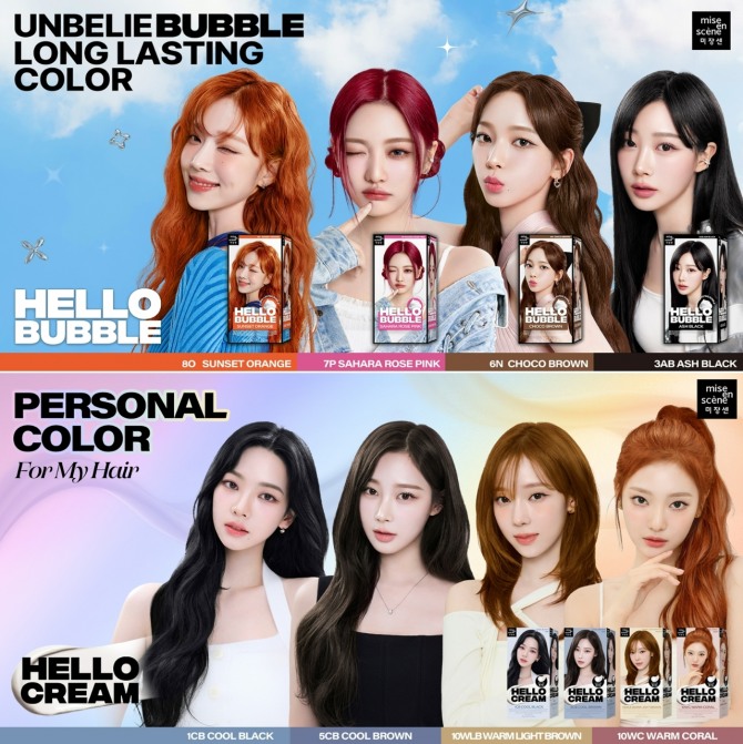 한편, 미쟝센은 이달 16일부터 28일까지 아모레성수에서 헬로버블과 헬로크림 팝업 행사를 진행한다. ‘컬러 피팅샵’ 콘셉트로 운영되는 이번 행사에서는 헬로마이컬러 AR 서비스와 헤어피스, 가발 등으로 미쟝센의 28종 컬러들을 모두 체험하고 나에게 어울리는 최적의 컬러를 찾을 수 있다.