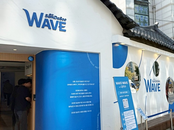 11일 제주삼다수 팝업스토어 ‘잔잔한 일상의 새로운 물결, 웨이브’에 방문했다. 구성이 알차다. 팝업스토어는 총 3개 층으로 구성된다. 스탬프투어 형식으로 각자의 성향에 맞춘 제주삼다수 시음 서비스, 유형별 게임 등의 맞춤형 여정이 진행된다.