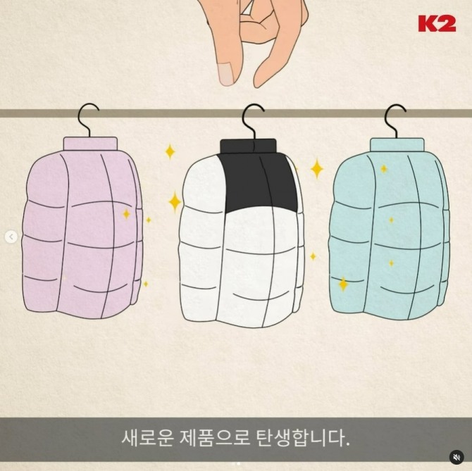 이미지 확대보기K2는 8일 공식 인스타그램을 통해 'K2 리사이클 유어 다운 캠페인'이라는 글과 함께 짤막한 애니메이션 영상을 공개했다.