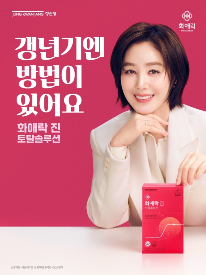 이미지 확대보기정관장은 김성령을 ‘화애락’ 모델로 다시 발탁하고 신규 광고를 공개했다고 17일 밝혔다. 동시에 ‘에브리타임’, ‘화애락’, ‘기다림’ 등 주요 브랜드를 중심으로 통합 캠페인을 진행한다.