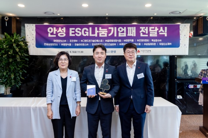‘사랑의 열매 ESG나눔기업패’는 전년도 1천만 원 이상 기부한 기업·법인에 수여되는 상이다. 이날 행사에는 김보라 안성시장과 김효진 경기사회복지공동모금회 사무처장을 비롯해 그랜드썬기술단에스피(SP), SK하이닉스, 농협은행 등 다수의 기업 대표들이 참석했다.