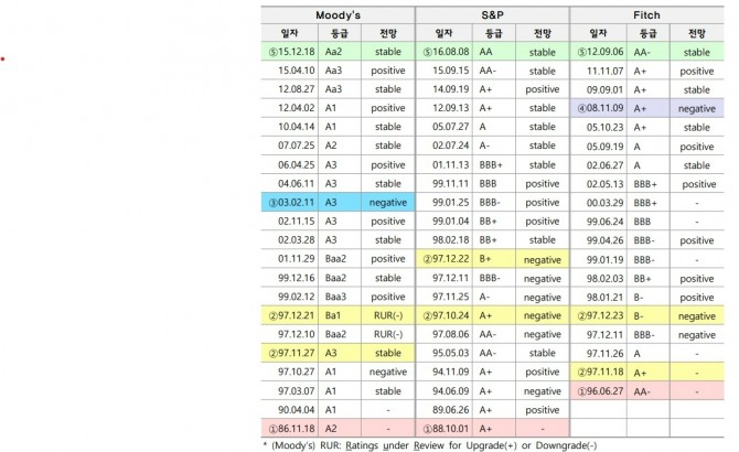 S&P는 15일 한국 국가신용등급을 'AA'로 유지했다. 2016년 한국 국가신용등급을 'AA-'에서 'AA'로 상향 조정한 후 유지하고 있다.