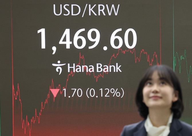 원·달러 환율, 전날 대비 1.4원 하락한 1469.9원 주간장 마감