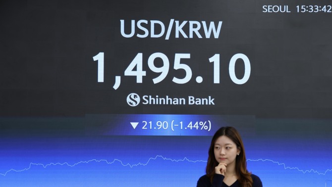 이날 환율은 전 거래일보다 26.4원 내린 1490.9원에 출발해 장중 한때 낙폭을 줄이며 1500원을 웃돌기도 했지만, 이후 다시 하락 폭을 키우며 장을 마쳤다.