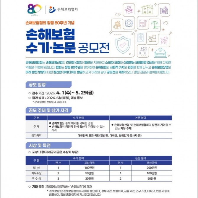 수기 부문은 손해보험을 통해 위기를 극복한 경험 등을 주제로 한다.