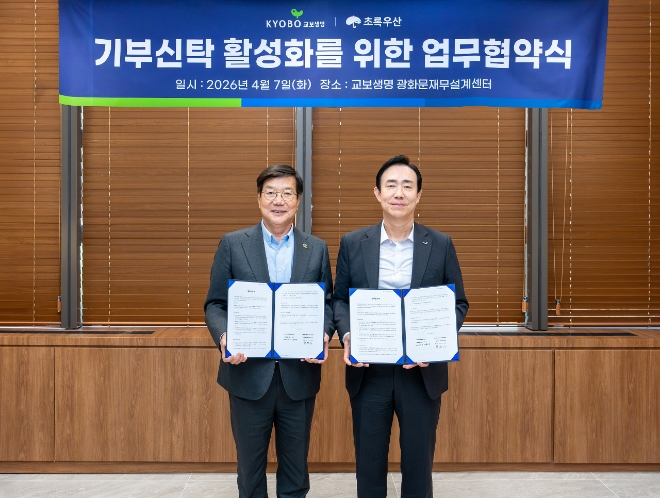 이미지 확대보기교보생명은 아동복지전문기관 초록우산과 ‘기부신탁 활성화를 위한 업무협약’을 맺었다고 9일 밝혔다.