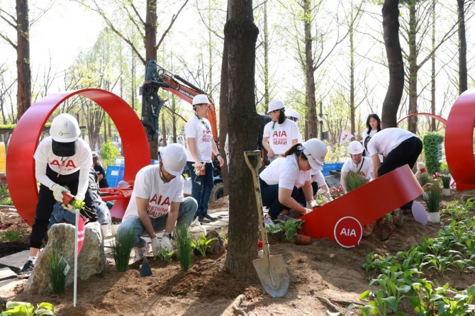 참여 임직원들은 ‘AIA Rethink Healthy(리씽크헬씨) 가든’ 조성을 위한 식재 활동을 비롯해 서울숲 일대를 돌며 쓰레기를 수거했다.