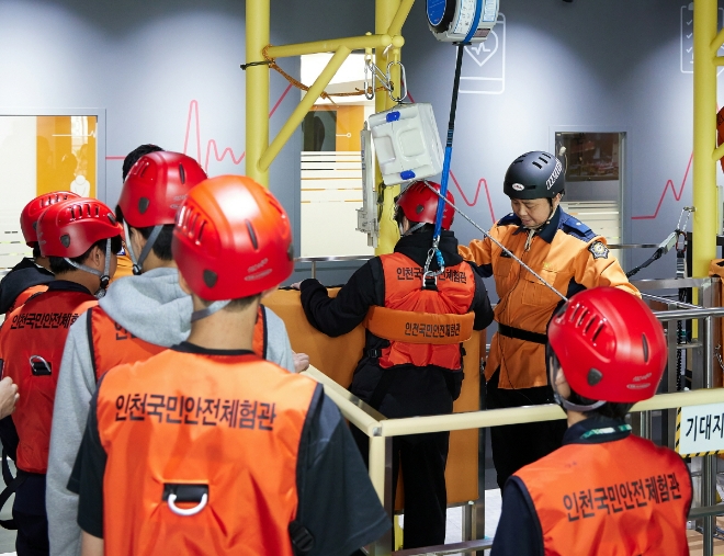 그룹홈 아동은 인천국민안전체험관을 방문해 생활 안전, 화재안 전, 자연재난 등 실제 상황을 반영한 재난 안전 체험 교육을 했다.