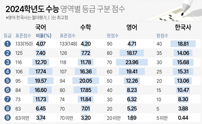 다만 1등급 등급 컷은 133점, 2등급 등급 컷은 126점으로 지난해 수능과 같았다.