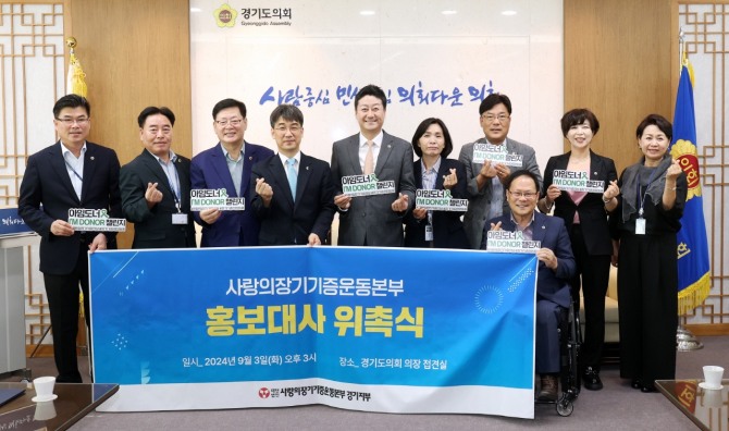 이날 장기기증 홍보대사로 위촉된 의원은 경기도의회 김진경 의장과 경기도의회 보건복지위원회 이선구 위원장, 황세주 부위원장, 김동규 의원, 박재용 의원, 윤태길 의원, 정경자 의원 등이다.