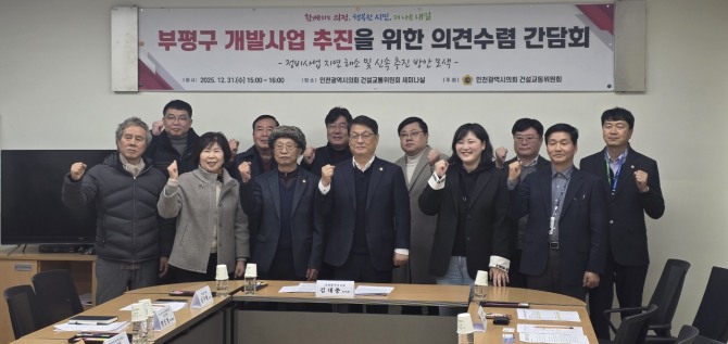 이날 간담회에는 김대중 인천광역시의회 건설교통위원장, 이단비 인천광역시의원, 윤구영 부평구의원을 비롯해 동소정사거리 북동측 구역 등 6개 정비사업 추진 구역 주민대표, 인천시 주거정비과 관계 공무원 등이 참석해 현장의 목소리를 공유했다.