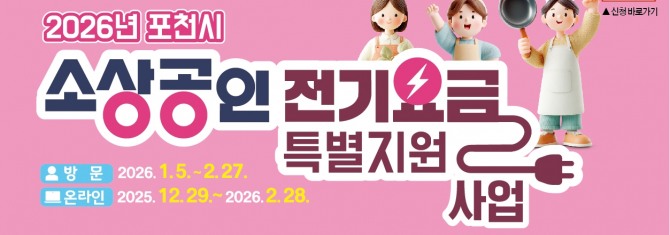 지원 금액은 최대 30만 원으로 포천사랑상품권으로 지급되며, 신청 시 사업자등록증 사본, 주민등록초본, 2025년 1월부터 12월까지의 전기요금 고지·납부 증빙자료를 제출해야 한다.