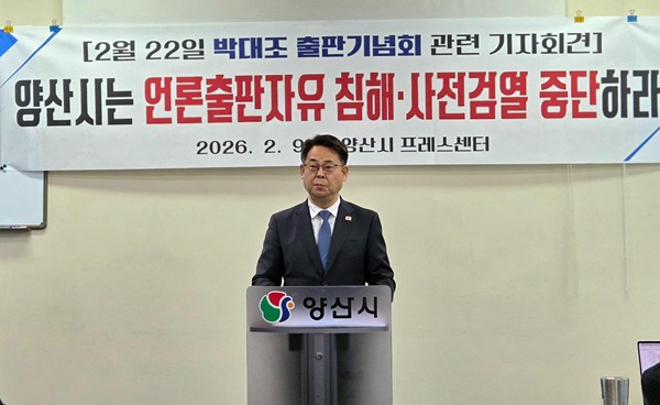 이미지 확대보기박 교수는 지난 9일 오전 양산시청 프레스센터에서 기자회견을 열고 “이미 허가가 완료된 출판기념회에 대해 사후적으로 자료 제출을 요구하는 것은 사실상의 사전검열”이라며 “헌법이 보장한 표현의 자유를 침해하는 행정”이라고 주장했다.