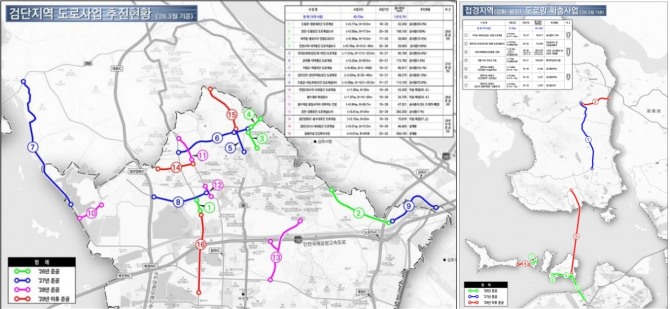 지역 간 교통 격차를 줄이고 균형발전을 뒷받침하기 위한 핵심 프로젝트로 첫째, 검단지역에서는 검단양촌IC~봉수대로, 금곡동~대곡동 구간 등 총 16개 도로사업이 추진된다. 총연장 40.73km, 사업비는 약 1조 6,137억 원에 달한다고 전했다.