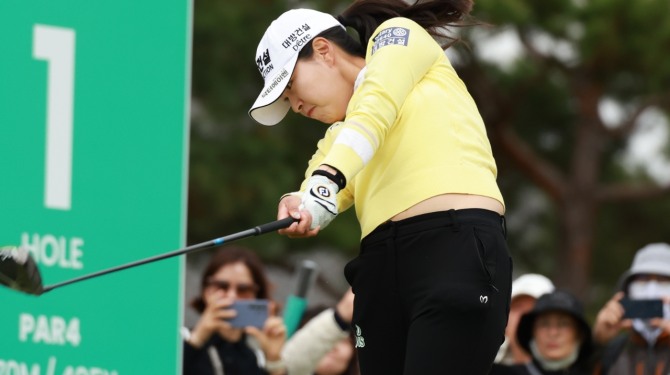 10일 강한 바람이 불어닥친 가운데 경북 구미시 골프존카운티 선산(파72·6778야드)에서 열린 한국여자프로골프(KLPGA)투어 iM금융그룹오픈(총상금 10억원, 우승상금 1억8000만원) 2라운드.