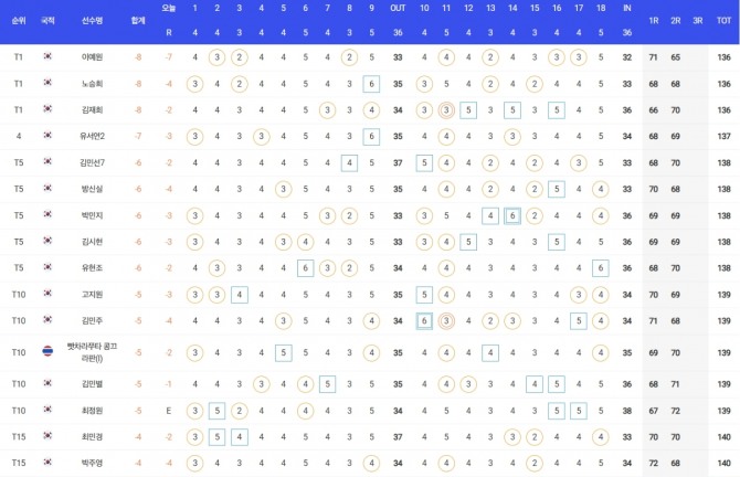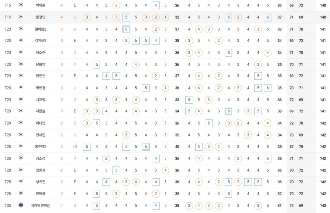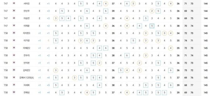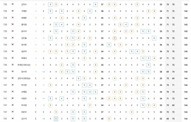 이날 컷 탈락 기준 타수는 합계 1오버파 145타였다.