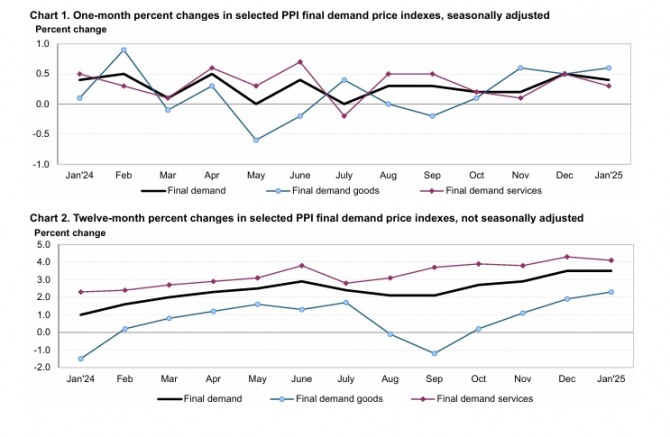 식품·에너지·무역서비스를 제외한 근원 PPI도 전월 대비 0.2%, 전년 동월 대비 3.2% 상승하며 시장예상치(0.3%↑·3.3%↑)를 하회했다.