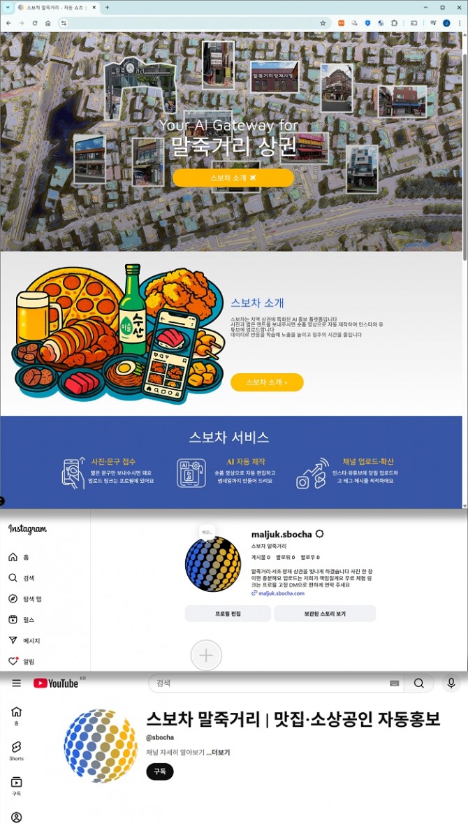 스보차는 SNS 홍보가 매출에 도움이 된다는 사실을 알지만 시간이 부족한 소상공인을 위해 만들어졌다. 점심 준비와 키오스크 관리로 바쁜 업주 대신 AI가 영상을 제작하고 게시한다. 가게가 각자 고립돼 경쟁하지 않도록 동네를 하나의 채널로 묶는 방식이다. 첫 번째 테스트는 말죽거리에서 진행한다.