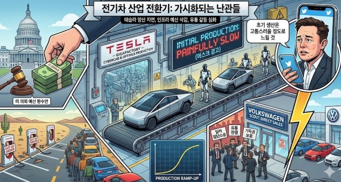 테슬라가 야심 차게 도입한 '언박싱(Unboxed)' 제조 공정이 지연의 주요 원인이다. 차량을 구역별로 나누어 조립한 뒤 마지막에 결합하는 이 방식은 효율성은 높지만, 초기 단계에서 수많은 신규 부품 수급과 복잡한 조립 과정이 필요하다. 머스크 CEO는 "생산 확충 속도는 새로운 부품과 단계 수에 반비례한다"라고 말했다.