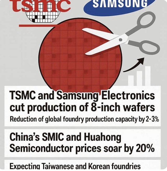TSMC와 삼성전자의 감산으로 중국 파운드리 업체들의 협상력이 강화되고 있다. 중국 반도체제조국제(SMIC)와 화홍반도체 등은 지난해 3분기부터 웨이퍼 가격을 점진적으로 올리기 시작했다. 현재 중국의 8인치 파운드리 가격은 전년 대비 약 20% 상승한 상태다.