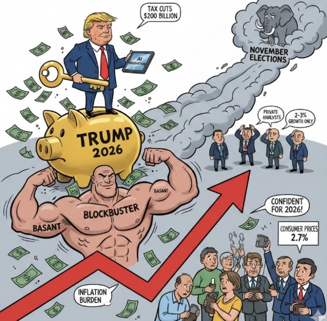 뉴욕 얼라이언스번스타인의 에릭 위노그래드 선진국 경제 조사 책임자는 최근 2026년 성장률 전망치를 0.5%포인트 올려 2.3%로 조정했다. 그는 "행정부가 중간선거 주기에 초점을 맞추고 있다는 게 분명하다"며 "선거 전망을 높이기 위한 정책을 시행할 것으로 예상한다"고 분석했다.