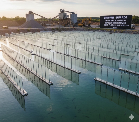 독일 에너지 혁신 기업 신 파워(SINN Power)가 개발한 '스키프 플로트(Skipp Float)' 기술의 핵심은 태양광 패널을 수면에 눕히지 않고 '수직'으로 세운 점이다.