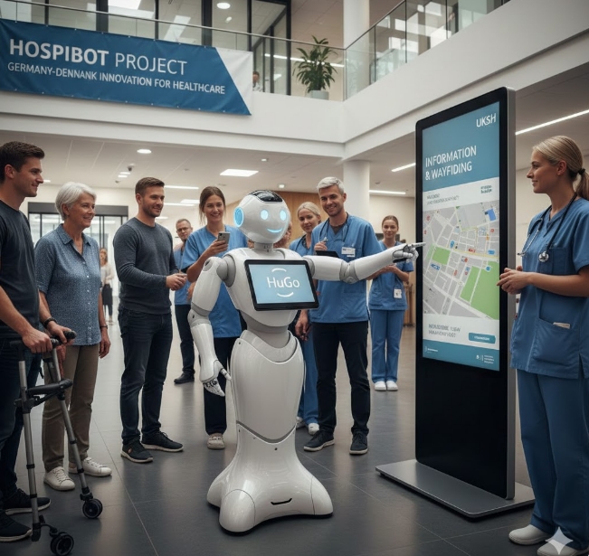 북독일방송(NDR)은 지난 10일(현지시각) UKSH가 이날 외래진료동 입구에서 휴머노이드 로봇 'HuGo(후고)'의 시범 운영을 시작했다고 보도했다.