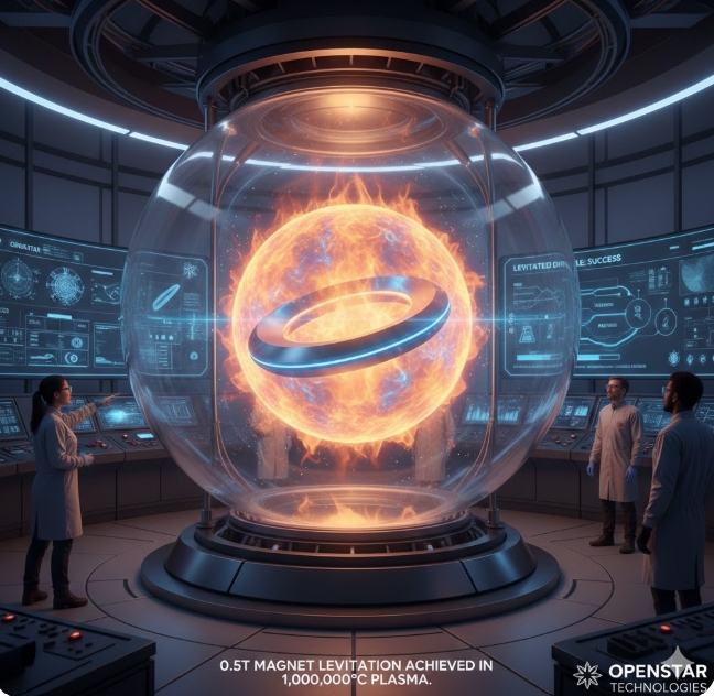 블룸버그 통신(Bloomberg)은 지난 17일(현지시각) 보도를 통해 오픈스타가 5m 크기의 진공 챔버 내부에서 100만 도에 이르는 플라즈마를 발생시키고, 그 중심에 0.5t 무게의 초전도 자석을 공중에 띄우는 ‘자기부상’ 실험에 성공했다고 전했다.