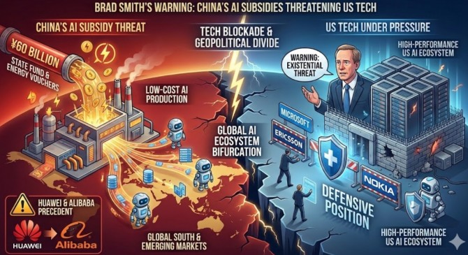 지난 18일(현지시각) 미국 경제 매체 CNBC에 따르면, 스미스 부회장은 중국의 국가 주도적 지원 방식이 과거 통신 장비 시장을 장악했던 것과 유사한 경로로 흐르고 있다며 서방 기업과 정부의 기민한 대응을 촉구했다.