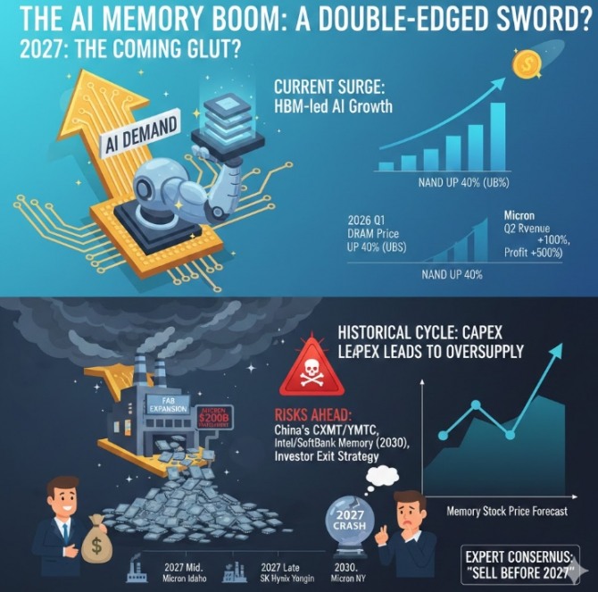 또한, 메모리 업체들이 과거와 달리 수익성 중심의 보수적 가동률 전략을 고수한다면 '치킨게임' 식의 폭락은 피할 수 있다는 시각도 있다. 그러나 분명한 것은 2027년 대규모 물량이 시장에 쏟아지는 시점에는 현재와 같은 '깜짝 프리미엄'을 기대하기 어렵다는 점이다. 투자자들은 '슈퍼사이클'의 화려함 이면에 가려진 공급 주기(Cycle)의 냉혹한 실체를 직시하며, 선제적인 리스크 관리에 나서야 한다고 시장의 전문가들은 말한다.