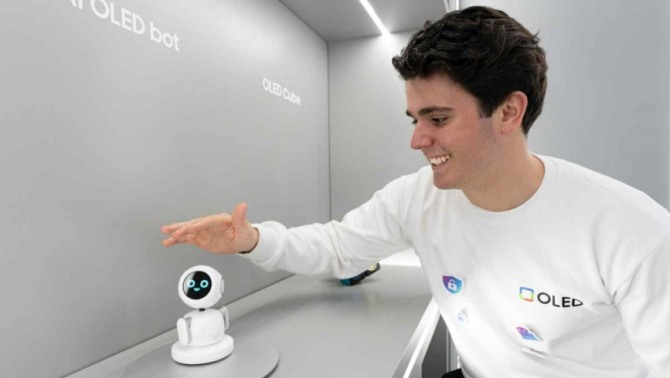 삼성디스플레이는 MWC 2026에서 AI 반려 로봇 '미니 펫봇(Mini Petbot)'을 선보였다. 3.4인치 원형 OLED를 통해 로봇의 표정을 생생하게 구현한 이 제품은 유연한 OLED 기술이 로봇 디자인의 핵심 요소임을 증명했다.