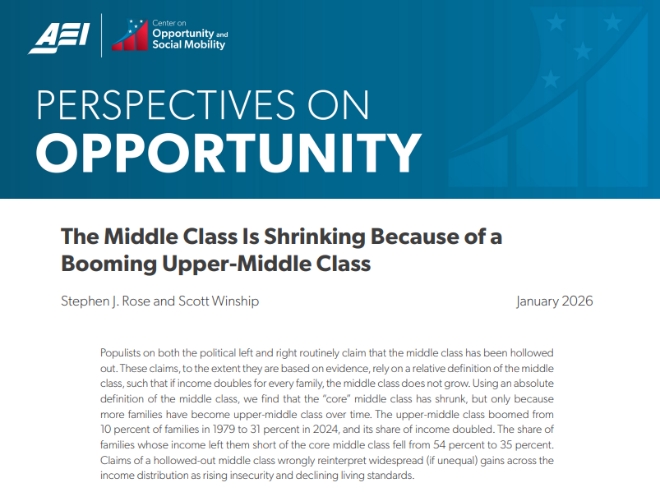 WSJ에 따르면 보수 성향 싱크탱크인 아메리칸엔터프라이즈연구소(AEI)는 최근 발표한 보고서에서 2024년 기준 중상층에 해당하는 미국인 비중은 약 31%로 집계됐다고 밝혔다. 이는 1979년 약 10%에서 3배 이상 늘어난 수준이다.