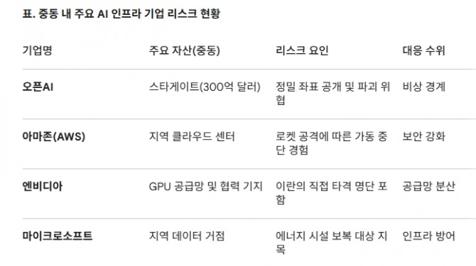 전문가들은 중동발 지정학적 불안정성이 글로벌 AI 서비스의 공급망 전체로 전이될 수 있다고 경고한다. 인프라 타격에 따른 가동 중단 리스크는 결국 AI 연산 비용 상승과 서비스 단가 인상으로 이어질 수밖에 없기 때문이다.